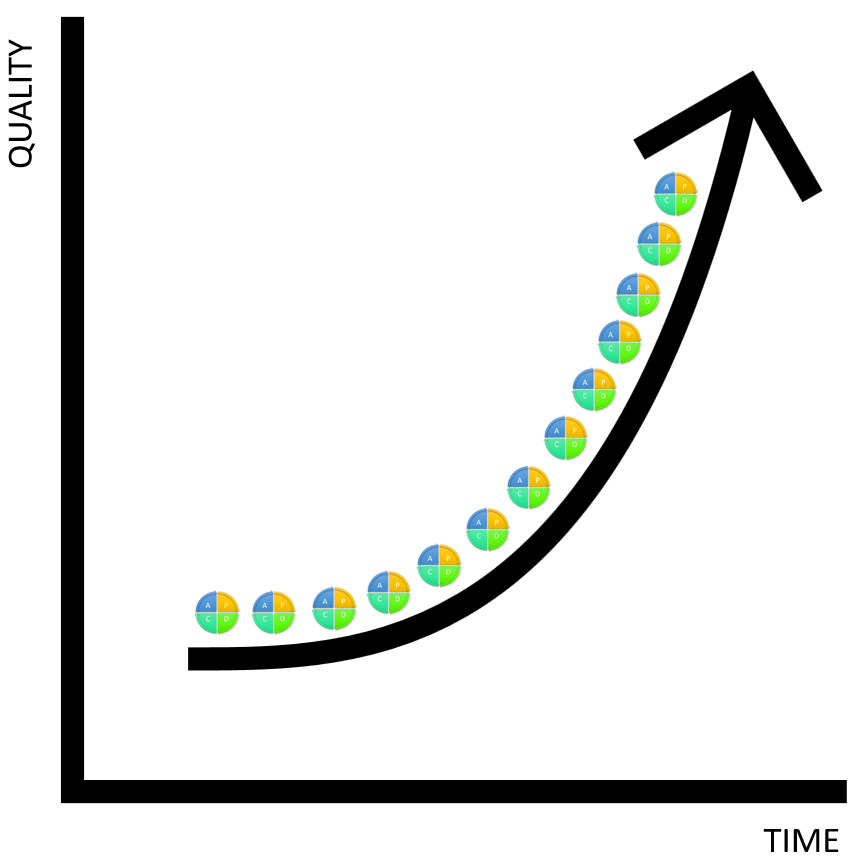We have a good day if we practice (really execute) some form of PDCA. We have a good week when we practice 7 days, and we have a great year when we practice this for 52 weeks.