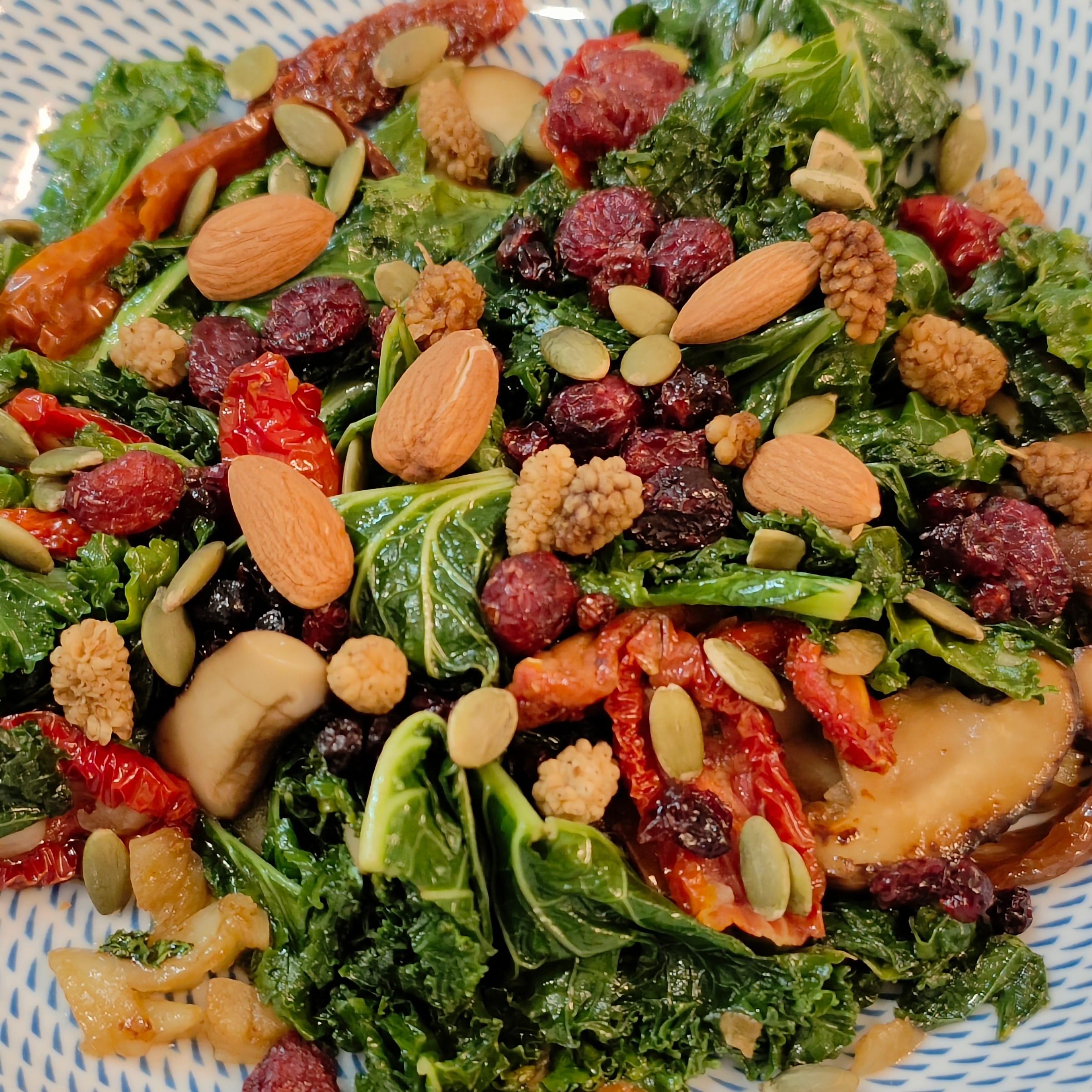 I will continue to cook different dishes and explore more varieties. This was my first attempt to cook kale with berries, nuts, and passion fruit enzymes.
