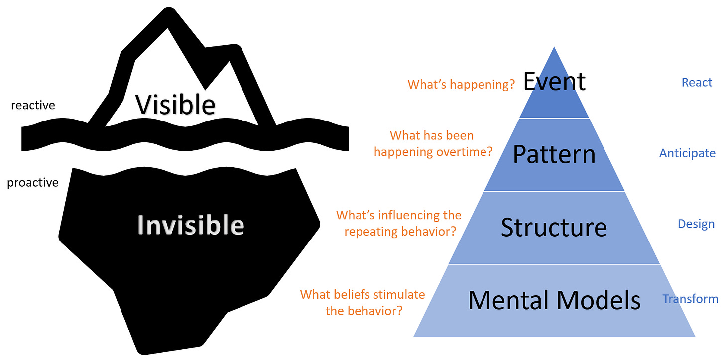 The Iceberg Model in Systems Thinking is a way to present wisdom if we know how to apply our leverage point by seeing beyond the symptom or event.